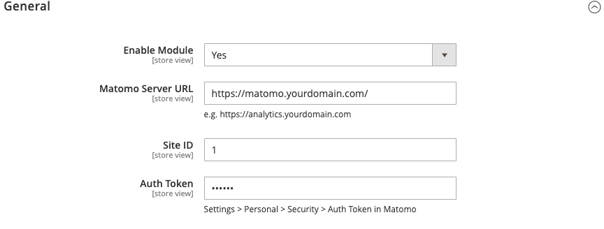 Enable Module: Enables or disables the Matomo tracking module for the selected store view.