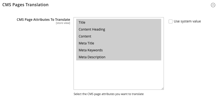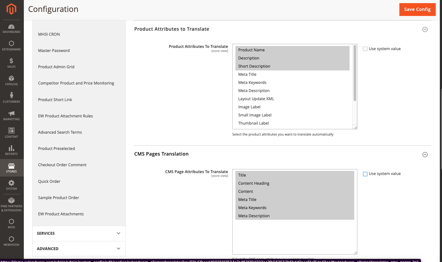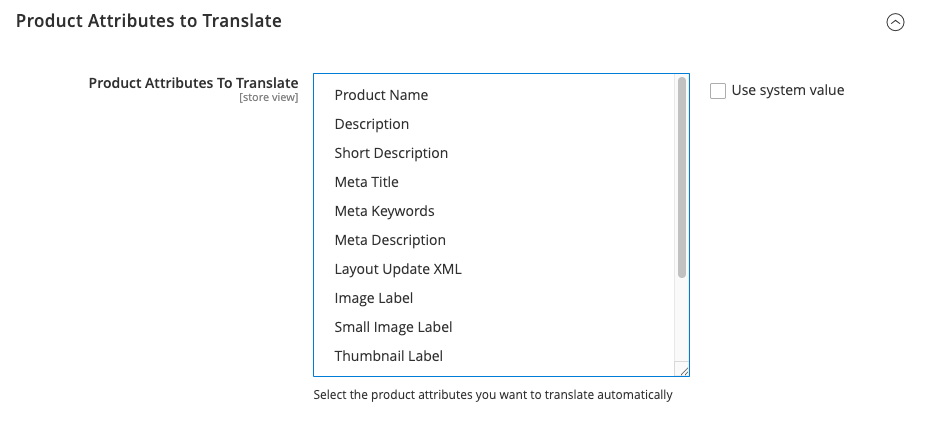 Configure translations for specific product attributes to ensure accurate and consistent multilingual content across store views.