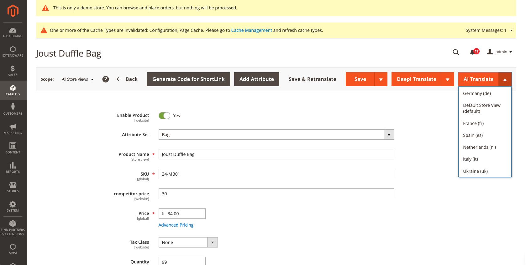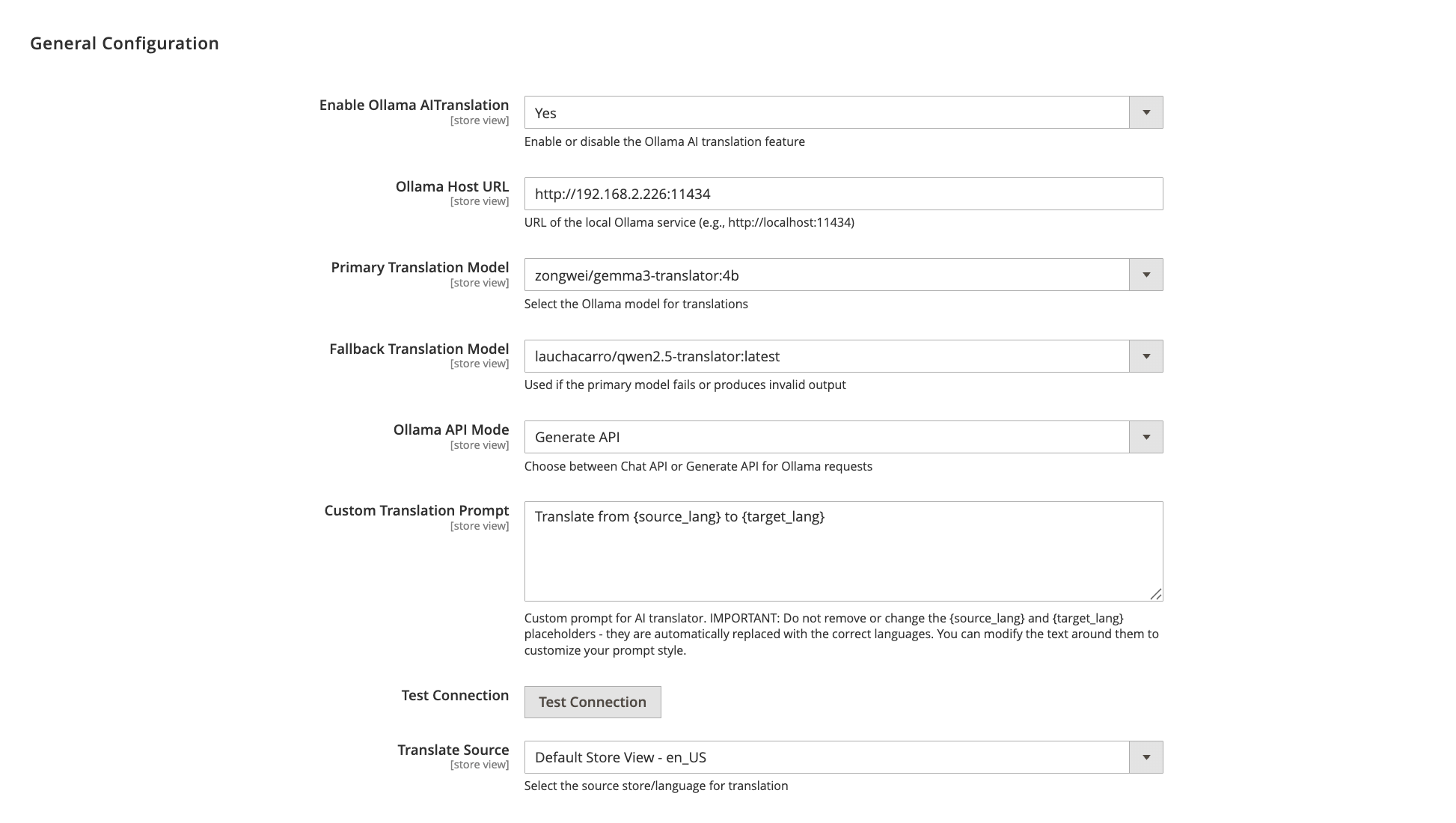 - Flexible Configuration: Define source stores, attributes to translate, and fallback models from the administrative panel.